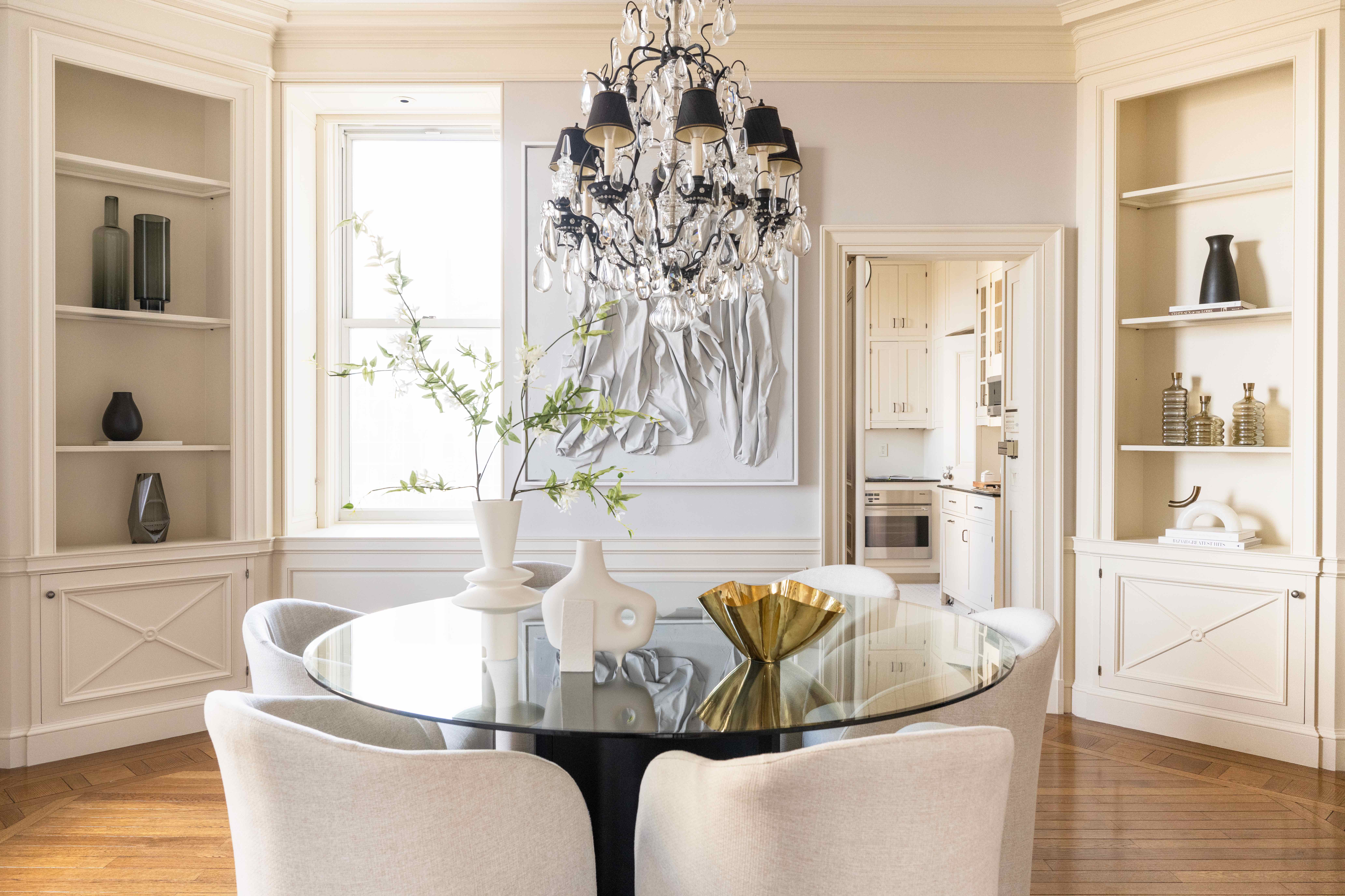 "We drew our design inspiration from the historic 1927 details of this fabulous eight-room co-op," said designer Cheryl Eisen, President of Interior Marketing Group. "Using a tonally neutral palate, rich textural fabrics, and carefully curated artwork, we created a light, airy, and sophisticated aesthetic."